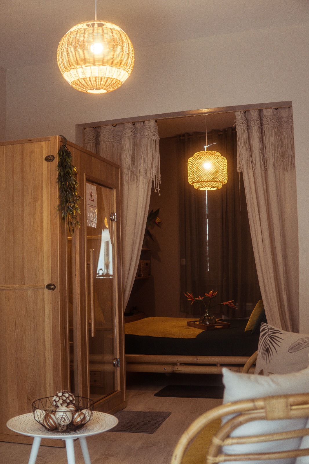 Situé à quelques minutes du centre-ville, ce petit coin de paradis vous invite à la détente grâce à son SPA et son sauna privé. Entièrement privatif, l’appartement dispose également d’une cour extérieure couverte, totalement sans vis-à-vis, pour profiter d’un moment de calme en toute intimité.